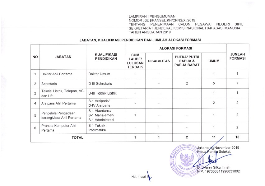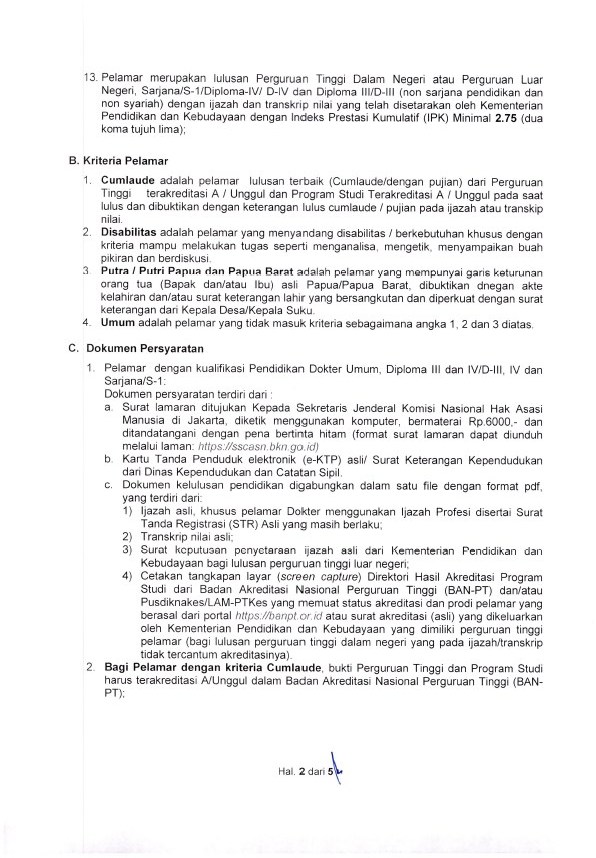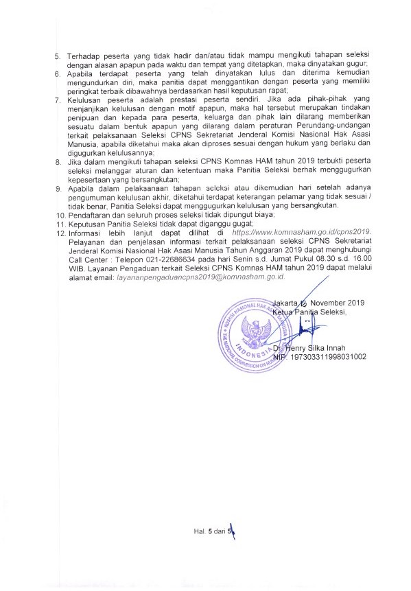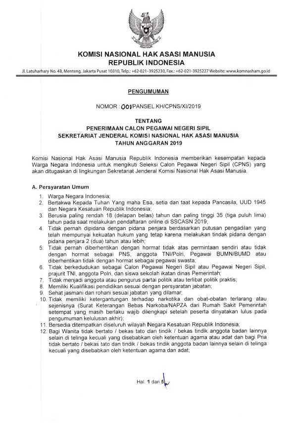 1. Pengumuman Pengadaan CPNS Komnas HAM Tahun 2019