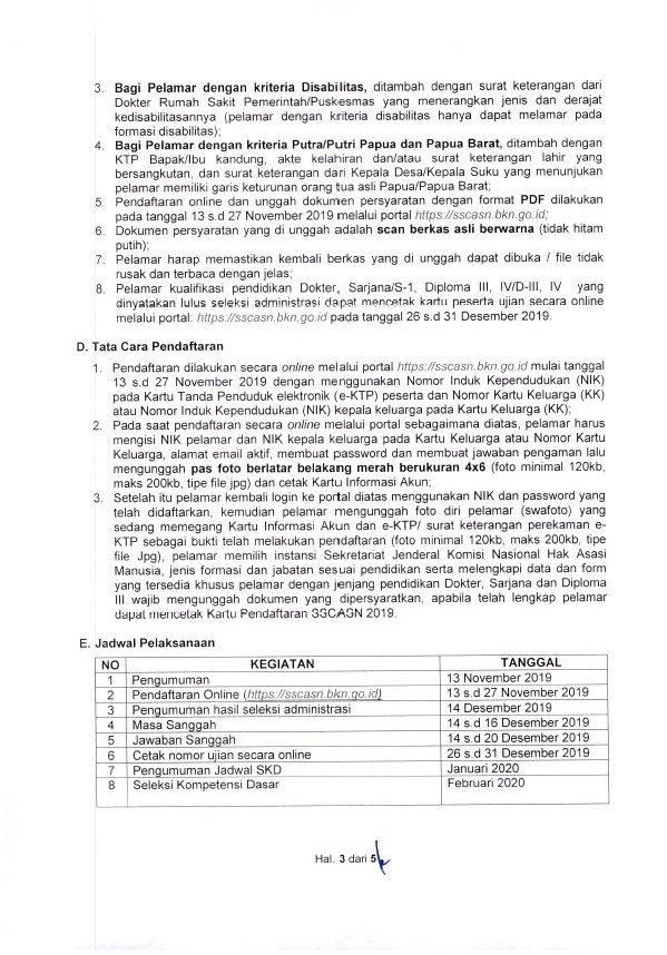 Baca dengan teliti setiap informasi rekrutmen CPNS Komisi Nasional Hak Asasi Manusia Tahun 2019 sebelum melanjutkan untuk melakukan pendaftaran online pada laman http://sscasn.bkn.go.id/ atau melalui situs http://sscn.bkn.go.id/. Anda juga dapat memantau setiap pengumuman CPNS Komnas HAM melalui website https://www.komnasham.go.id/cpns2019/.